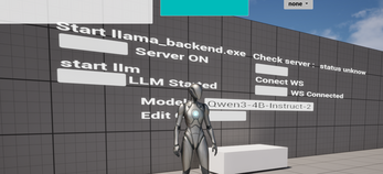 DevAIl runs Unreal Engine alongside a local Python backend (llama_backend.exe